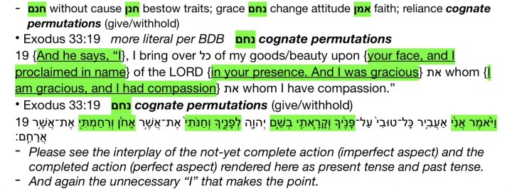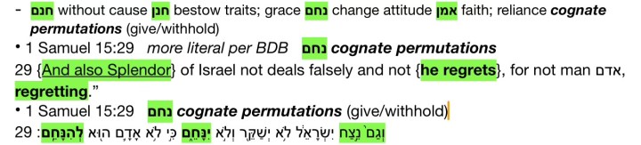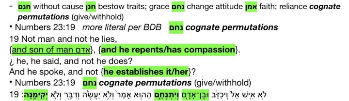 Impression חנם without cause חנן bestow traits; grace נחם change attitude אמן faith; reliance cognate permutations (give/withhold) (direct resource [positive/negative])